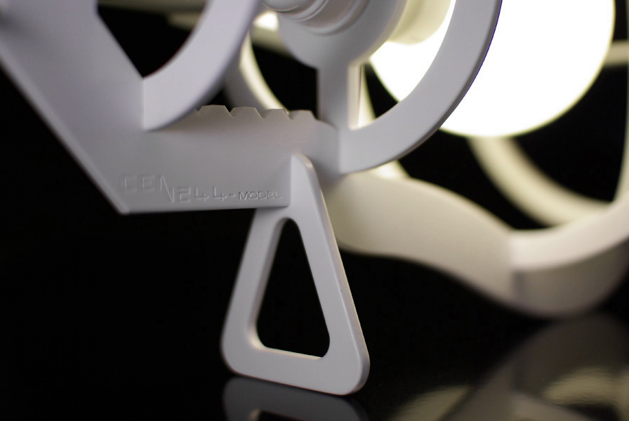 cen244 est un luminaire réalisé en résine de type Corian en finition poudrée. Chaque lampe se transforme au grès des envies en suspension, applique ou lampe de table. Equipée d'une ampoule fluocompacte basse consommation, la lampe respecte la directive Européenne éponyme CEN°244 tout en perpétuant par sa silhouette la mémoire des lampes à incandescence amenées à disparaitre.