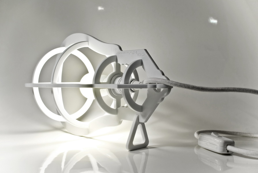 cen244 est un luminaire réalisé en résine de type Corian en finition poudrée. Chaque lampe se transforme au grès des envies en suspension, applique ou lampe de table. Equipée d'une ampoule fluocompacte basse consommation, la lampe respecte la directive Européenne éponyme CEN°244 tout en perpétuant par sa silhouette la mémoire des lampes à incandescence amenées à disparaitre.